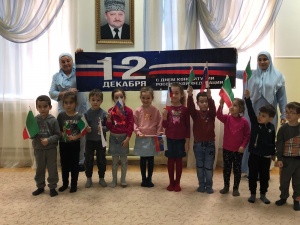 09.12.2021В рамках реализации национального проекта «Образование» и в соответствии с планом работы на 2021-2022 учебный год в МБДОУ «Детский сад № 1 «Ирс» с. Чечен-Аул муниципального образования городской округ город Аргун» с 9 декабря по 10 декабря 2021года с детьми старших и средних групп проведены беседы и тематические занятия, приуроченные ко Дню Конституции РФ, для формирования у воспитанников ДОУ общих понятий, слов «Конституция», «Гимн», «Права людей» и т. д.